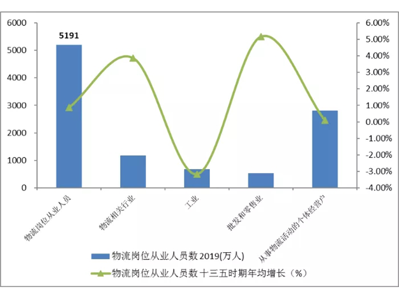 物流業(yè)吸納就業(yè)能力不斷增強,從業(yè)人員快速增長。根據(jù)測算,2019年末,我國物流崗位(既包括物流相關(guān)行業(yè)法人單位和從事物流活動的個體工商戶從業(yè)人員,也包括工業(yè)、批發(fā)和零售業(yè)等行業(yè)法人單位的物流崗位從業(yè)人員)從業(yè)人員數(shù)5191萬人,比2016年增長3.6%,年均增長0.9%。
