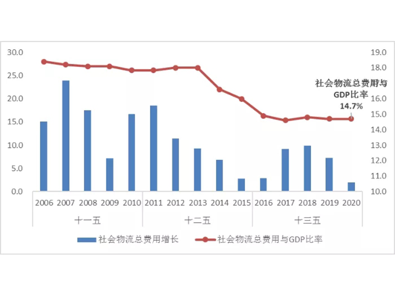二是多部門政策措施助力企業(yè)紓困,優(yōu)化營商環(huán)境,繼續(xù)推動降低行政性物流成本。通過多方努力,單位物流成本增速明顯趨緩,2020年社會物流總費用與GDP的比率14.7%,五年間下降1.3個百分點,物流降本增效成果顯著。