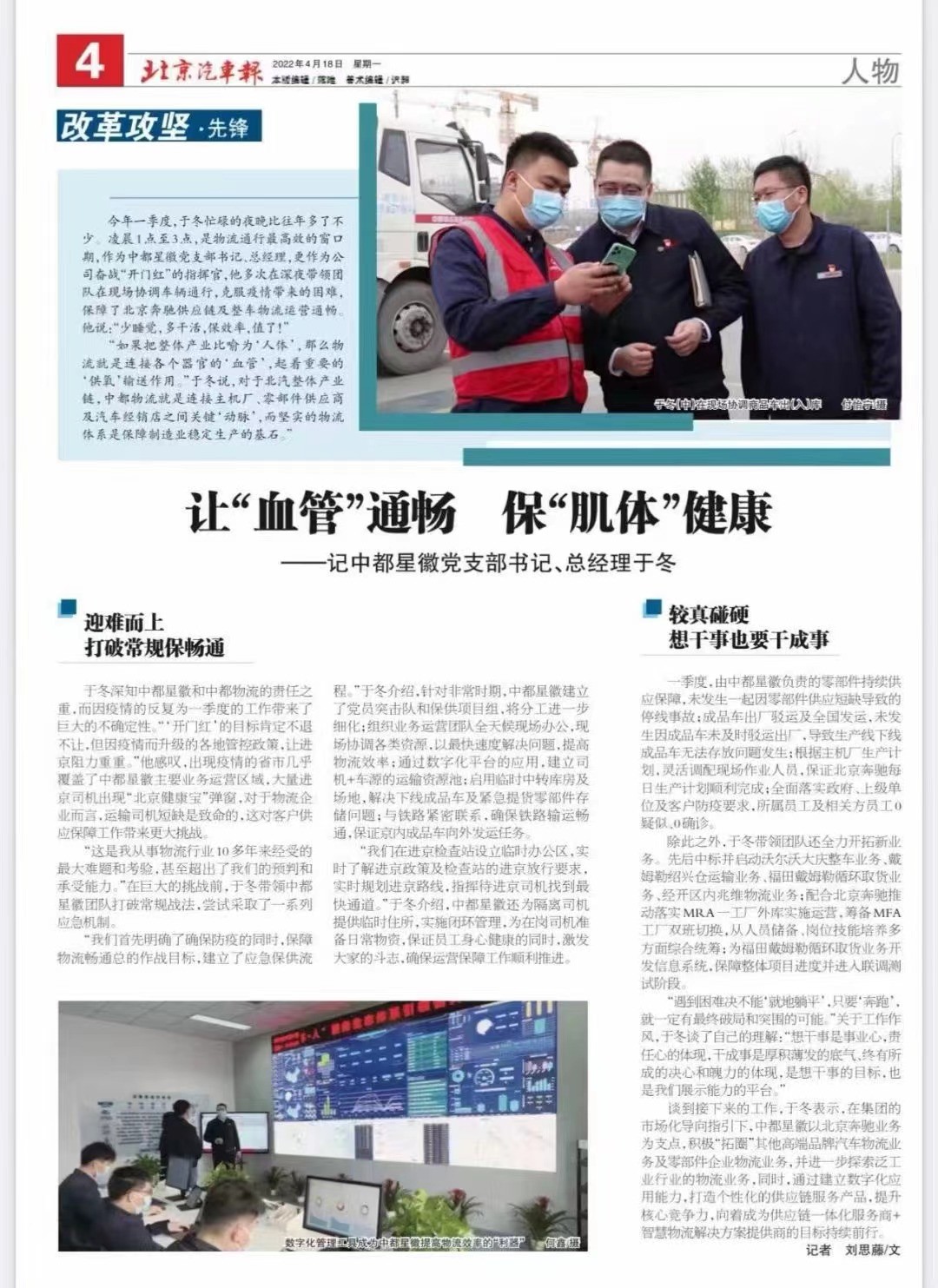 讓“血管”通暢 ?!凹◇w”健康——記中都星徽黨支部書記、總經(jīng)理于冬