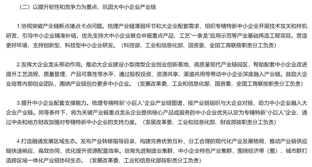 (二)產(chǎn)業(yè)鏈:以提升韌性和競爭力為重點,鞏固大中小企業(yè)產(chǎn)業(yè)鏈