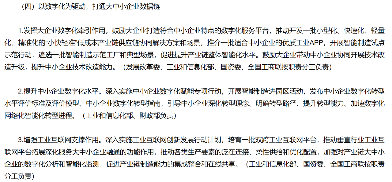 《攜手行動》提到要發(fā)揮帶企業(yè)數(shù)字化牽引作用,提升中小企業(yè)數(shù)字化水平,增強工業(yè)互聯(lián)網(wǎng)的支撐作用。
