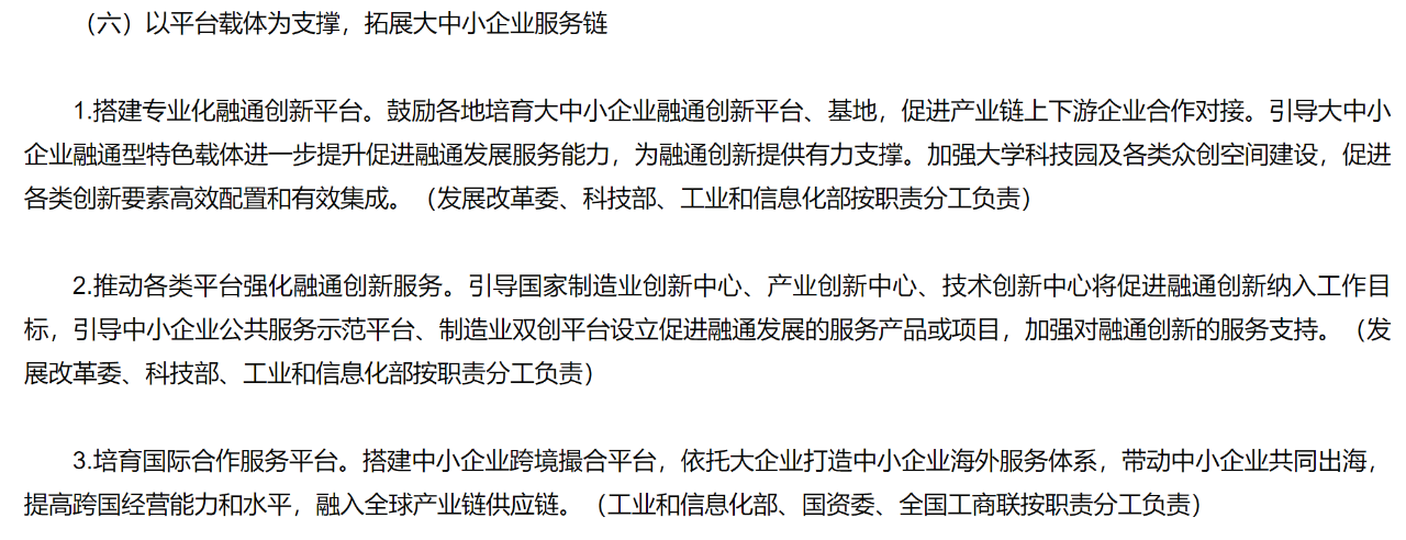 《攜手行動》提到要協(xié)同突破產(chǎn)業(yè)鏈斷點堵點卡點問題、發(fā)揮大企業(yè)龍頭帶動作用、提升中小企業(yè)配套支撐能力、打造融通發(fā)展區(qū)域生態(tài)。